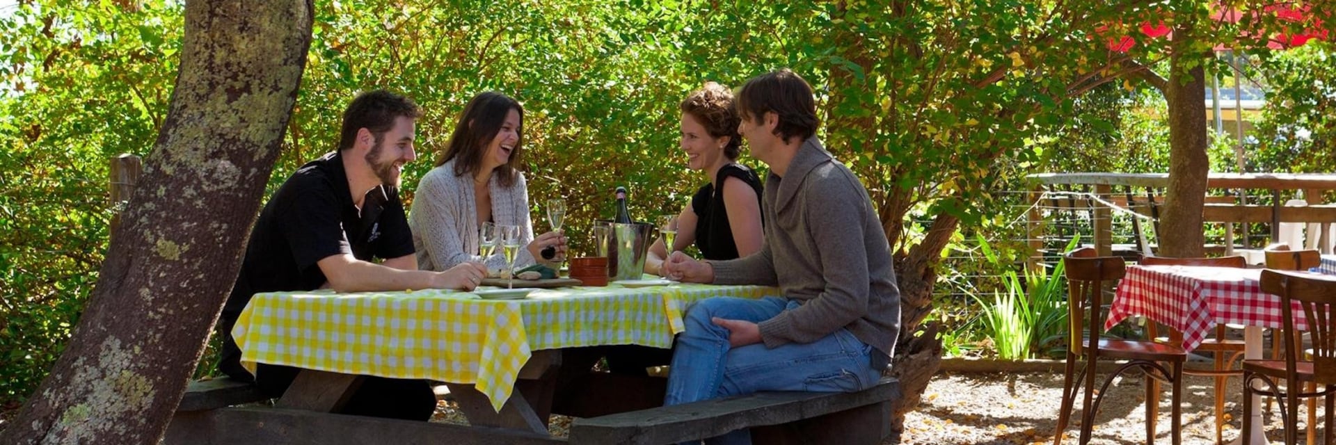 People dining outside at Mountain View Hotel in King Valley © Mountain View Hotel