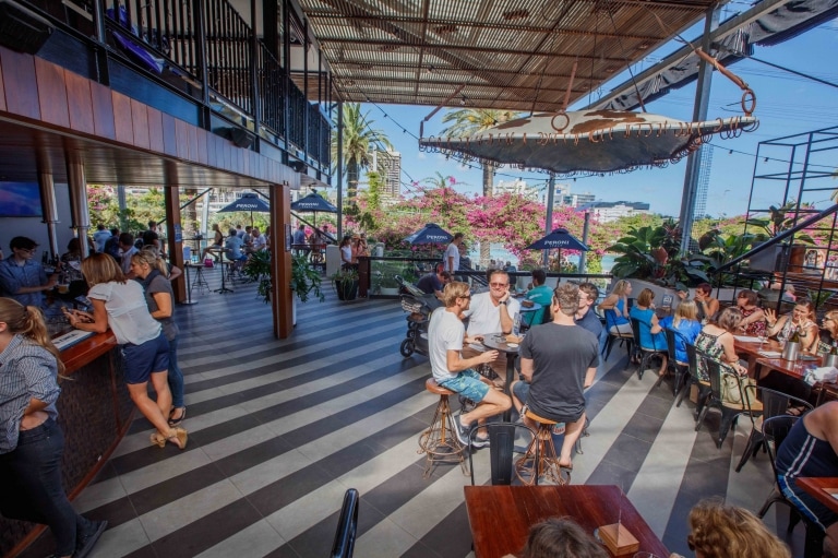 La brasserie en plein air, qui apporte l'ambiance d'un pub au soleil, est un élément essentiel de la vie gastronomique australienne, et cet aménagement haut de gamme est considéré comme la seule brasserie en plein air sur la plage de la ville. L'emplacement donne non seulement sur la plage artificielle de Streets Beach à South Bank, mais offre également une vue à 180 degrés sur la rivière et la ville depuis les terrasses du site. La bière et le steak sont à l'ordre du jour, mais la bière peut être une bière artisanale locale, et le steak, une viande locale ou un bœuf Wagyu japonais 9+. La plupart des viandes sont cuites sur le barbecue de la brasserie en plein air, tandis que les viandes fumées par la maison sont une autre spécialité. Essayez le crumble aux pommes et aux poires, le dessert préféré des Australiens.