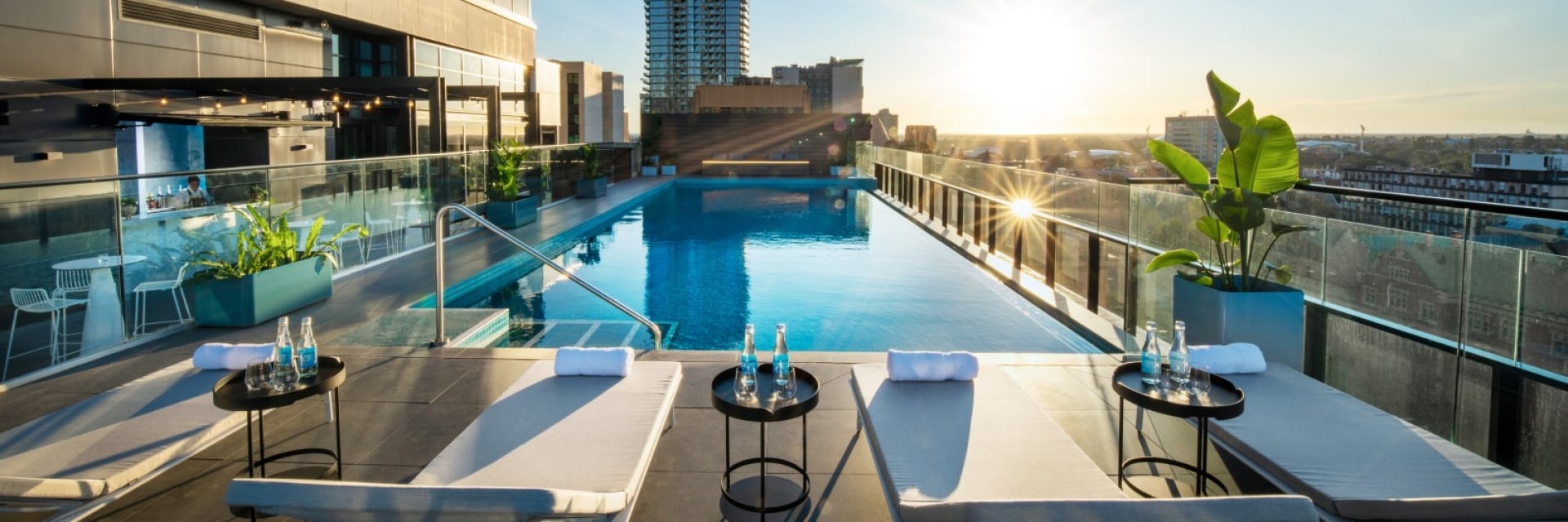 街で最も高いビルであるフローム・セントラル・タワー内にあるクラウン・プラザ・アデレード のロビー階、明るい光の差し込むスカイデッキに足を踏み入れると、広大な街の眺望に出迎えられます。レジャーやビジネスの旅行者を念頭に置いて設計されたこのホテルは、プラザ・ワークプレース(Plaza Workplace)などの共用ワークスペースを備えており、ホテル全館でシームレスな接続サービスを提供しています。その他の施設には、フィットネスセンター、和食レストランのクーモ(Koomo)、屋外温水インフィニティプールと隣接のルーフトップバーなどがあります。アデレードのイースト・エンドという立地から、徒歩圏にレーンウェイ(裏路地)、ギャラリー、ショッピング、バー、レストランがあります。