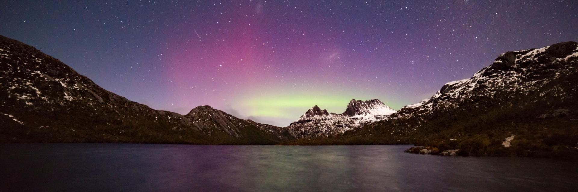 크래들 마운틴-세인트 레이크 호수 국립공원(Cradle Mountain-Lake St Clair National Park) 내에 있는 여러 개의 잔잔하고 거울 같이 맑은 호수들은 춤추는 남극광의 멋진 배경이 되어줍니다. 크래들 호수(Cradle Lake)나 도브 호수(Dove Lake)의 잔잔한 물가에 자리를 잡고 멋진 쇼를 구경할 준비를 하세요. 6천만 년된 배롱나무 숲과 장관을 이루는 산악 야생지대가 둘러싸고 있는 곳인 만큼 유명한 남극광을 볼 수 없는 밤에도 환상적인 자연 경치를 감상할 수 있습니다. 공원 내에 있는 세련된 크래들 마운틴 롯지(Cradle Mountain Lodge)에 묵으면 이 경이로운 야생지대에 쉽게 접근할 수 있습니다.